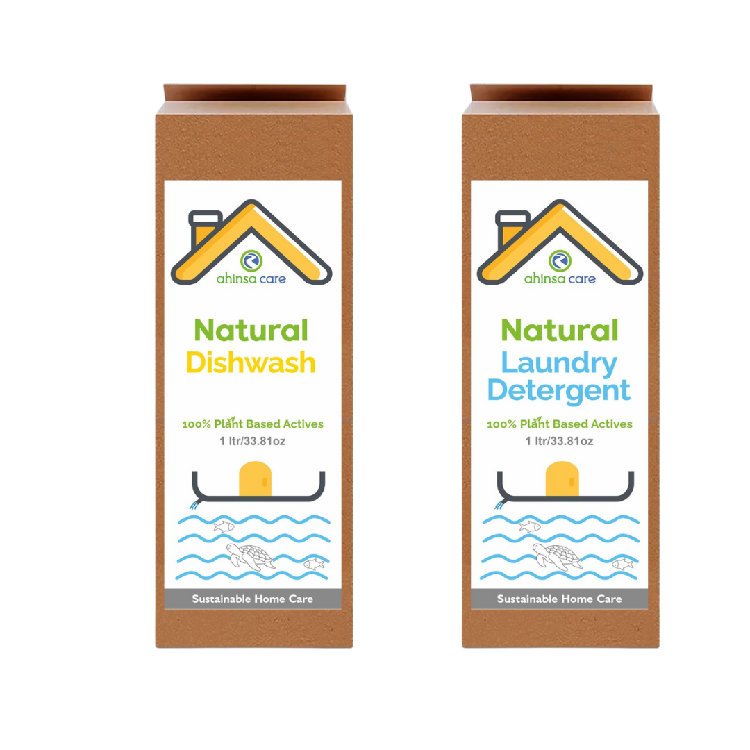 AHINSA CARE : Natural Laundry Detergent 1lit + Natural Dishwash Liquid 1lit