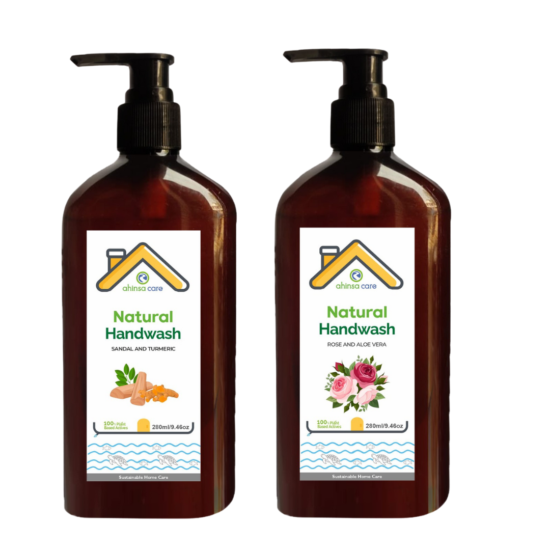 AHINSA CARE : Natural Handwash Sandal Turmeric and Rose Aloe Vera 280ml