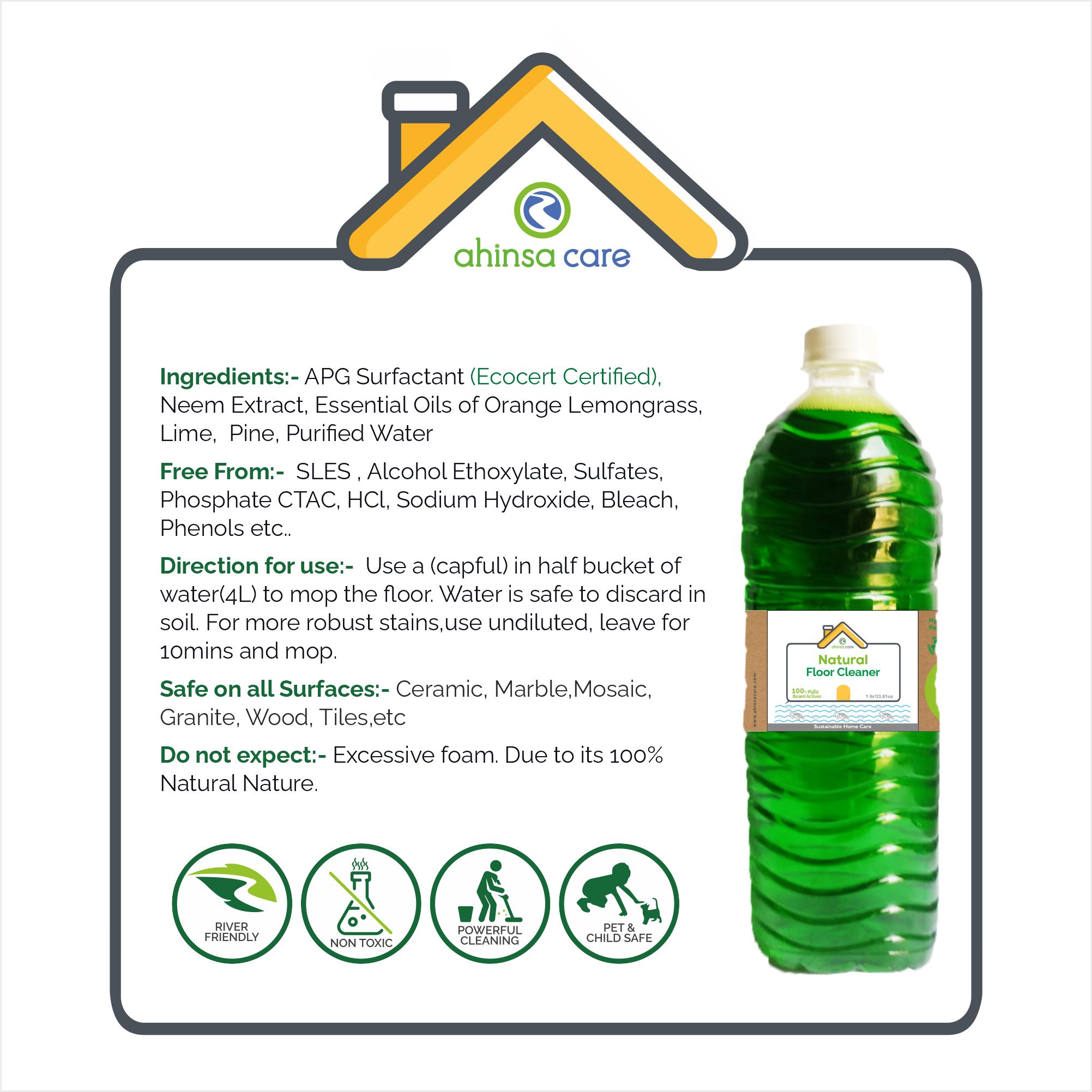 Ahinsa Care Natural Floor Cleaner effortlessly removes stubborn dirt and stains,Germs leaving your floors perfectly clean while maintaining their original texture.