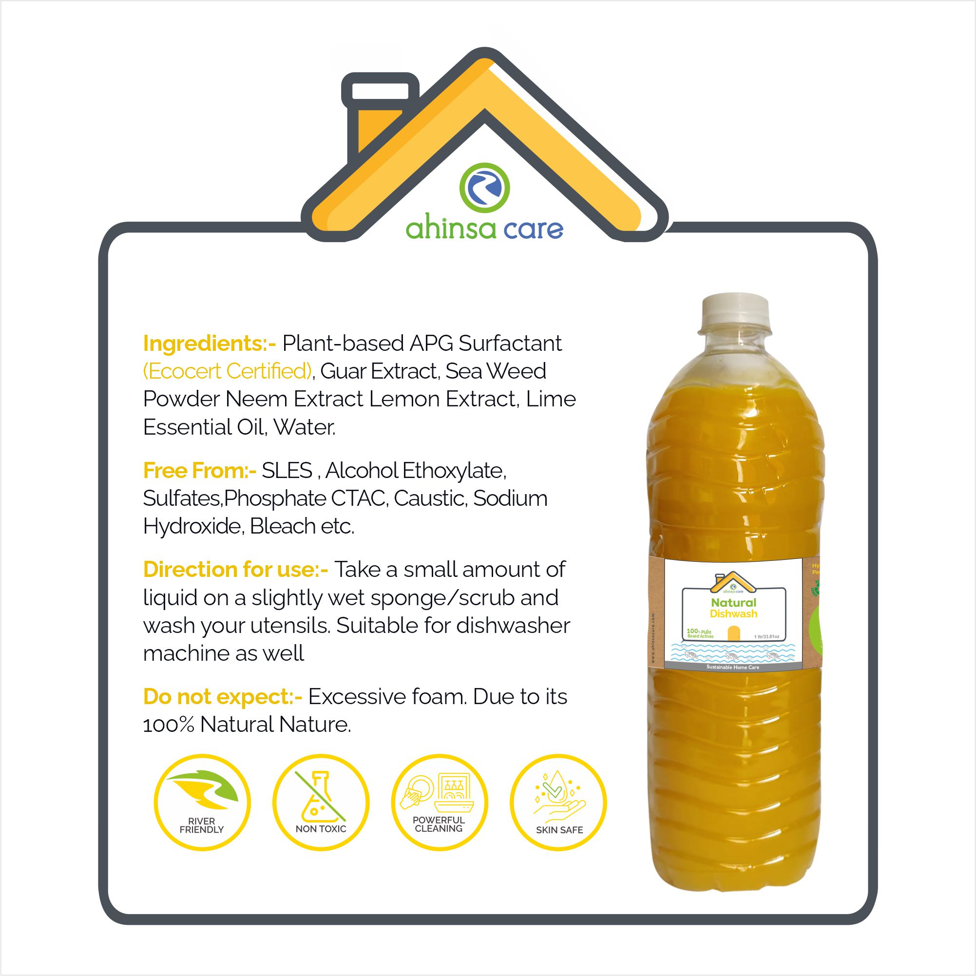 AHINSA CARE : Natural Dishwash Liquid 1lit + Natural Floor Cleaner 1lit