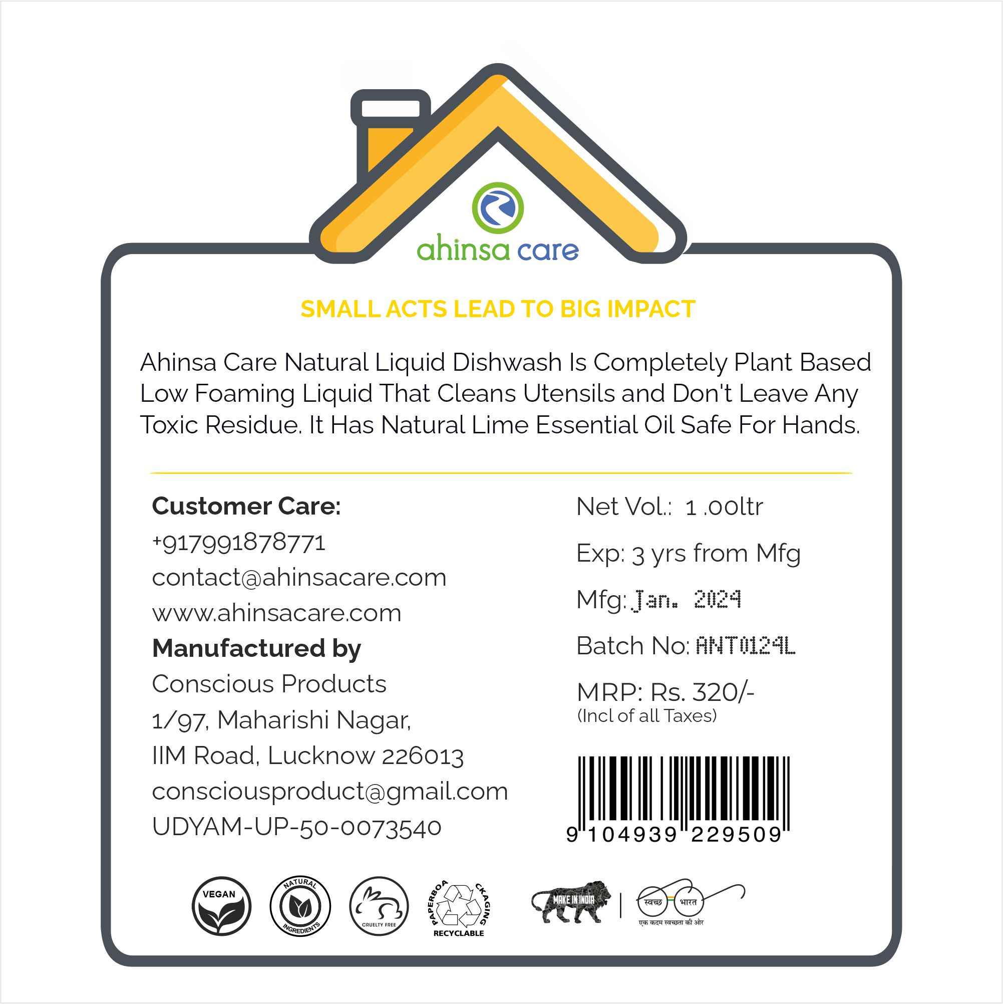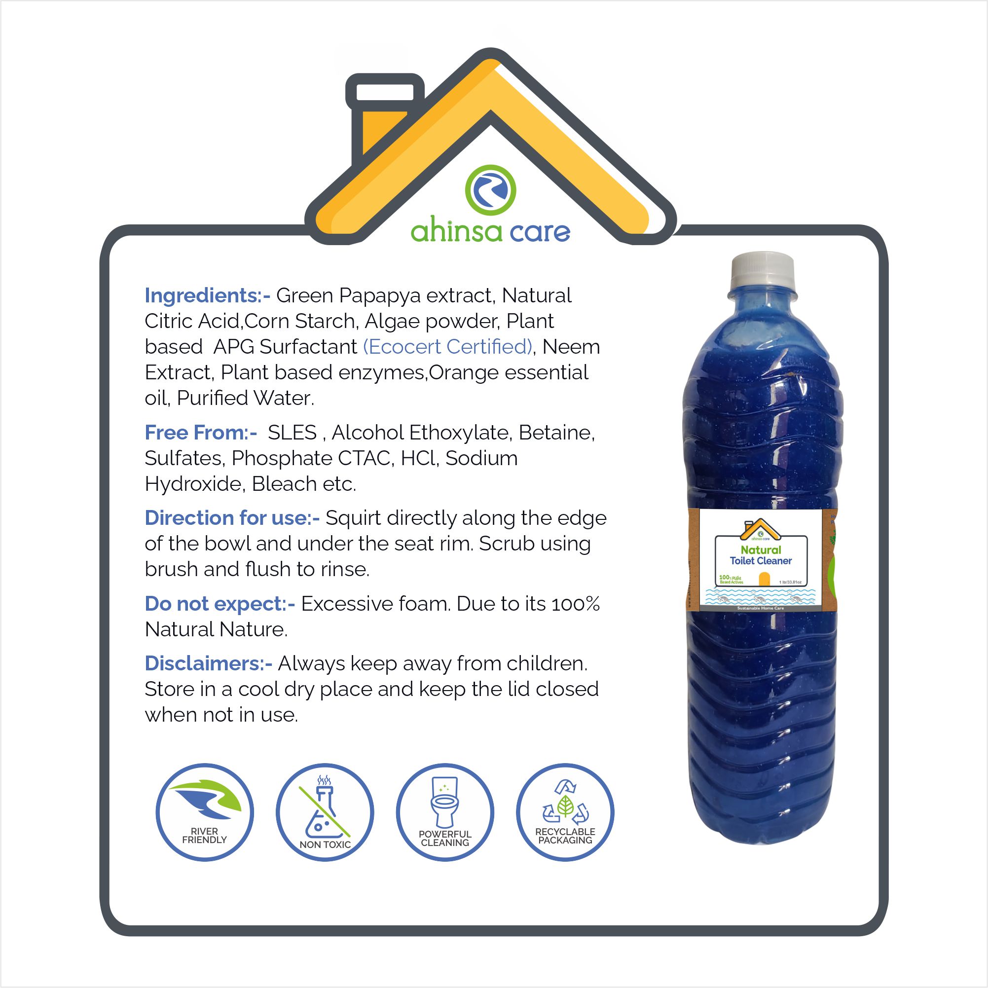 This pack consists of 2 Ahinsa care Natural Toilet Cleaner of 1 litre & Natural Dishwash Liquid of 1 litre .