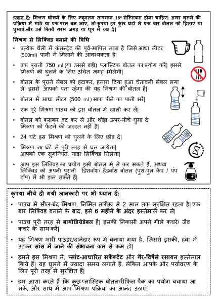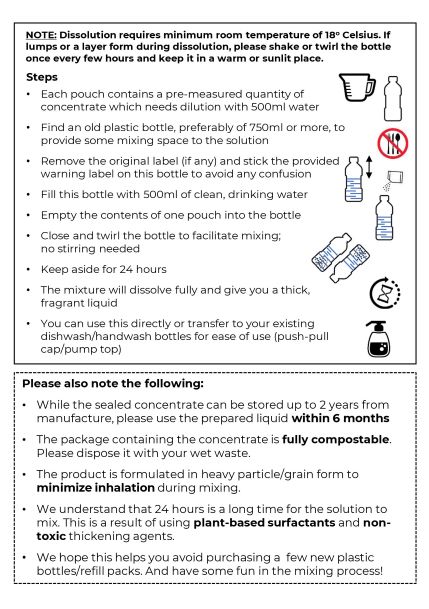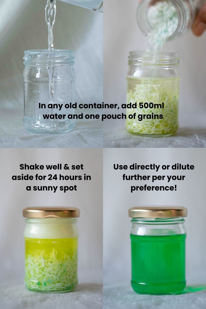 USE: Don’t throw away your old dishwasher bottle! Reusing is awesome ❤ Please refer to the images on the left for simple steps to create handwash liquid from grains. There will also be a detailed instruction leaflet inside the pack you receive.
