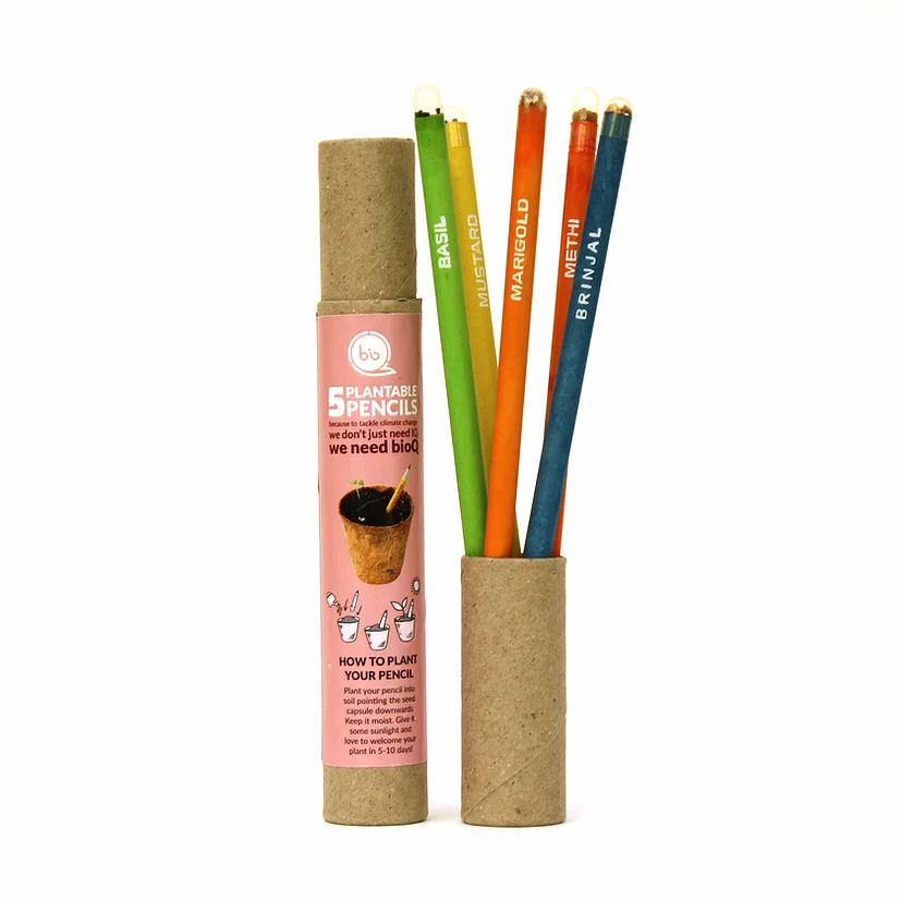 - All pens, pencils, and crayons have government-approved seeds of different plants contained in a water-soluble seed capsule (with seed name mentioned on each piece).