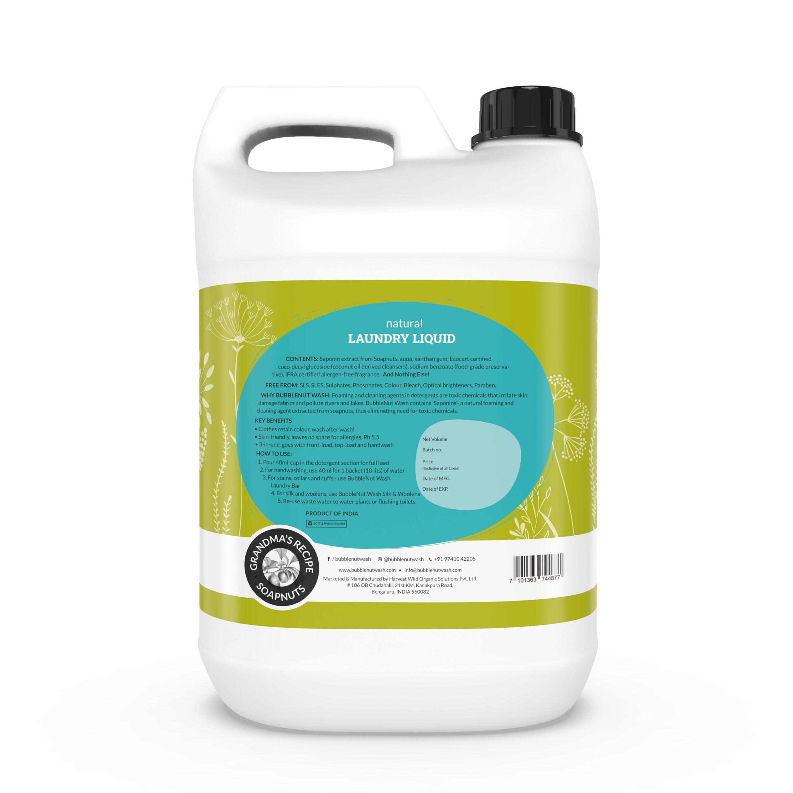 BubbleNut Wash : Natural Laundry Detergent (5L)