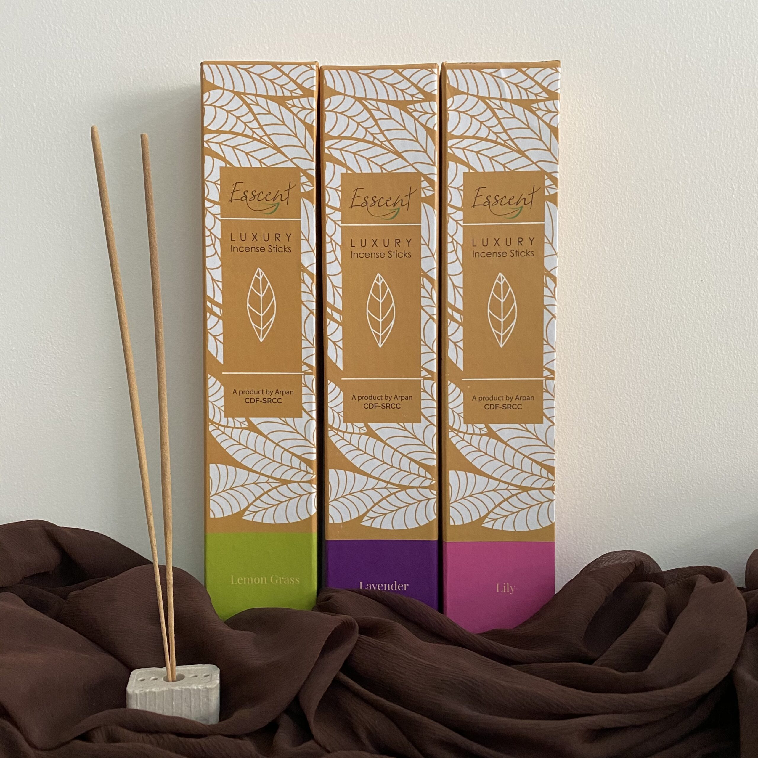 Lemongrass is a refreshing scent that stimulates the body and calms the soul. The scent of lemongrass all around you, your favorite book, a cup of tea, and some cookies, your idea of a ‘Day Well Spent’ is now available at your doorstep.Esscent by Arpan is a line of premium flower-based incense sticks. Esscent have come up with an eco-friendly solution wherein luxury incense sticks are produced out of flower waste and are hand-rolled by specially-abled people and women. Esscent has created an organic product which is made up of 60% flowers and is 100% charcoal free.