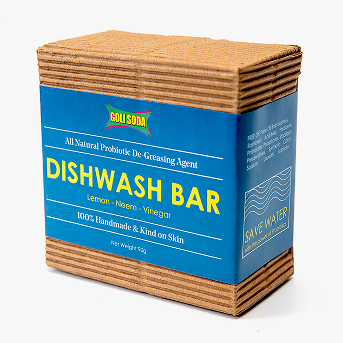 GOLI SODA Introduces 100% natural and eco-friendly Dish Wash Bar contains no parabens, phthalates, additives, preservatives and synthetic chemicals. No palm oil is used for the manufacturing of the soap with the aim to sustain and protect rain forests a products that have a positive impact on your health as well as preserving the environment.Dish Soap cuts through grease powerfully, remove odors and disinfects while being gentle on your hands, restoring the natural microflora. Healthy probiotic bacteria freshen smelly sponges and keep your drain clean and odour-free.