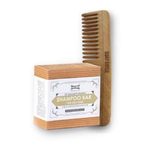This set includes a natural probiotics conditioner, shampoo bar & a neem wood comb – wide tooth with handle