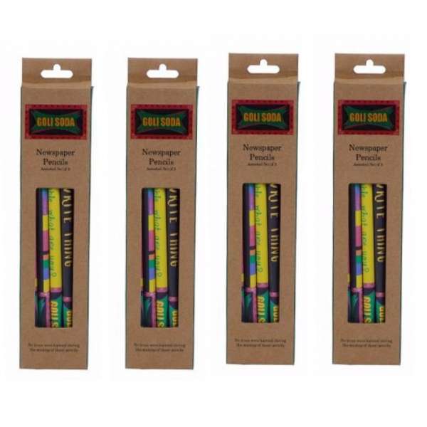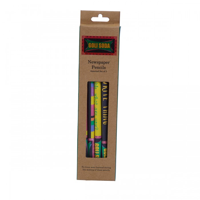 This consist of upcycled multicolor newspaper pencils