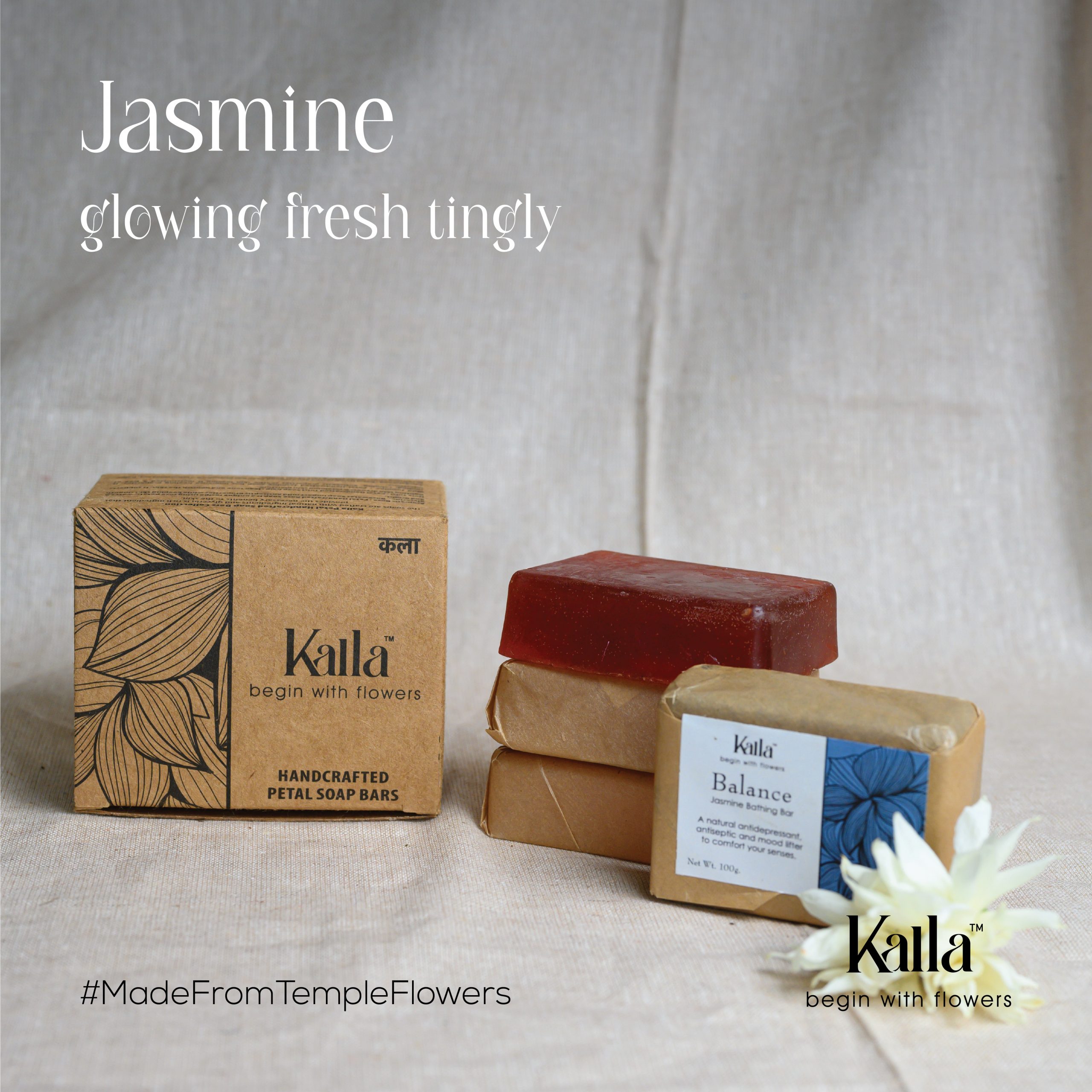 04 Kalla Assorted Bathing Bars of Jasmine. Each bar is of 100 gms.