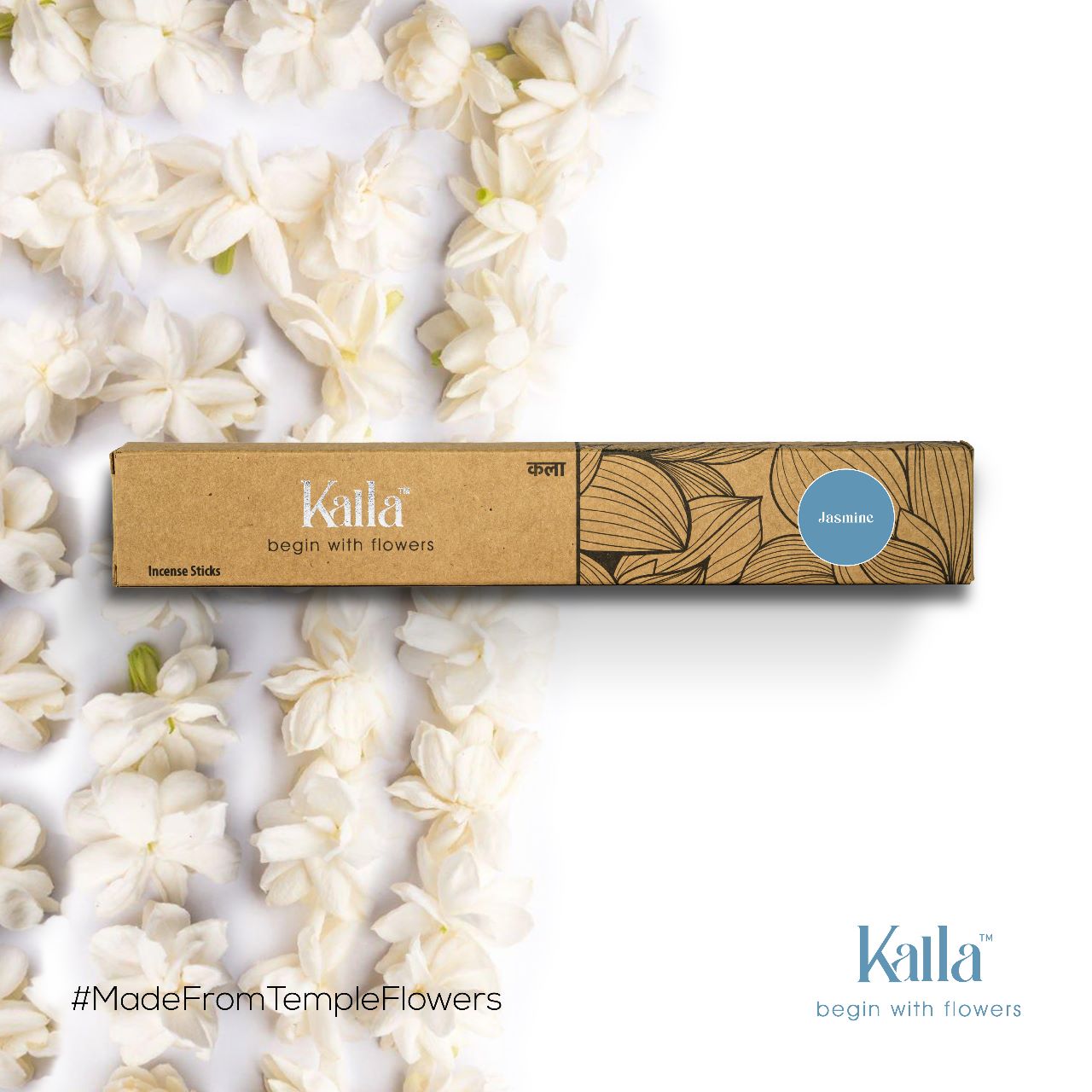 Made from sacred temple flowers, 100% natural essential oils. Kalla natural incense sticks are hand-rolled by women artisans.