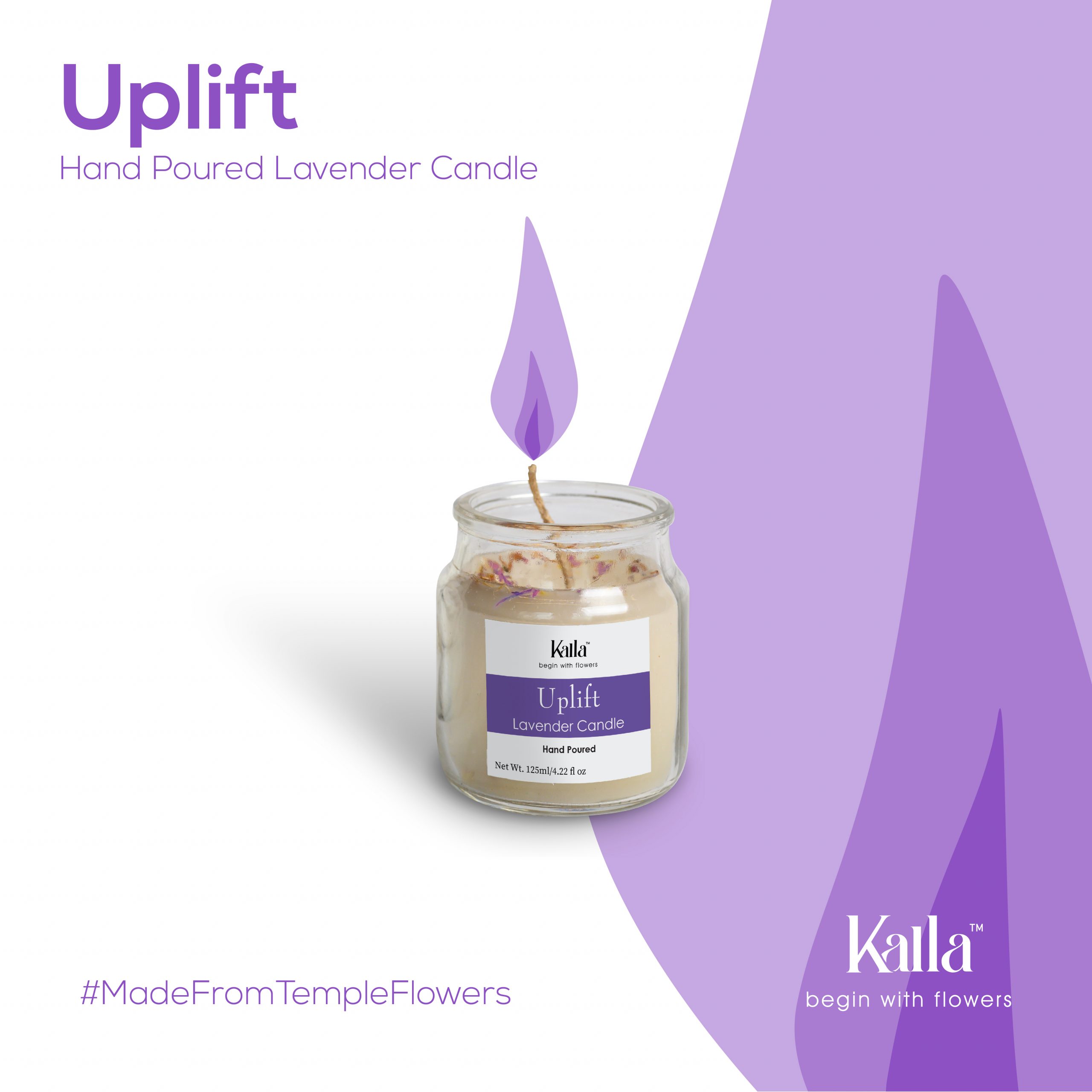 01 Kalla Uplift Lavender Fragrant Candle depending on the size selected. Available in a round air tight glass bottle.