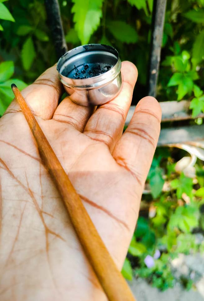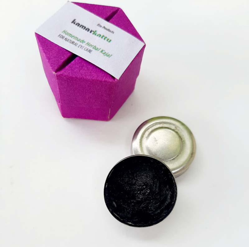 The kajal is 100 % natural and serves its basic purpose of cooling down your eyes with herbs and castor oil. Handmade using the traditional method, this kajal is perfect for babies too. The Kajal is thick and single dab is good enough per use.