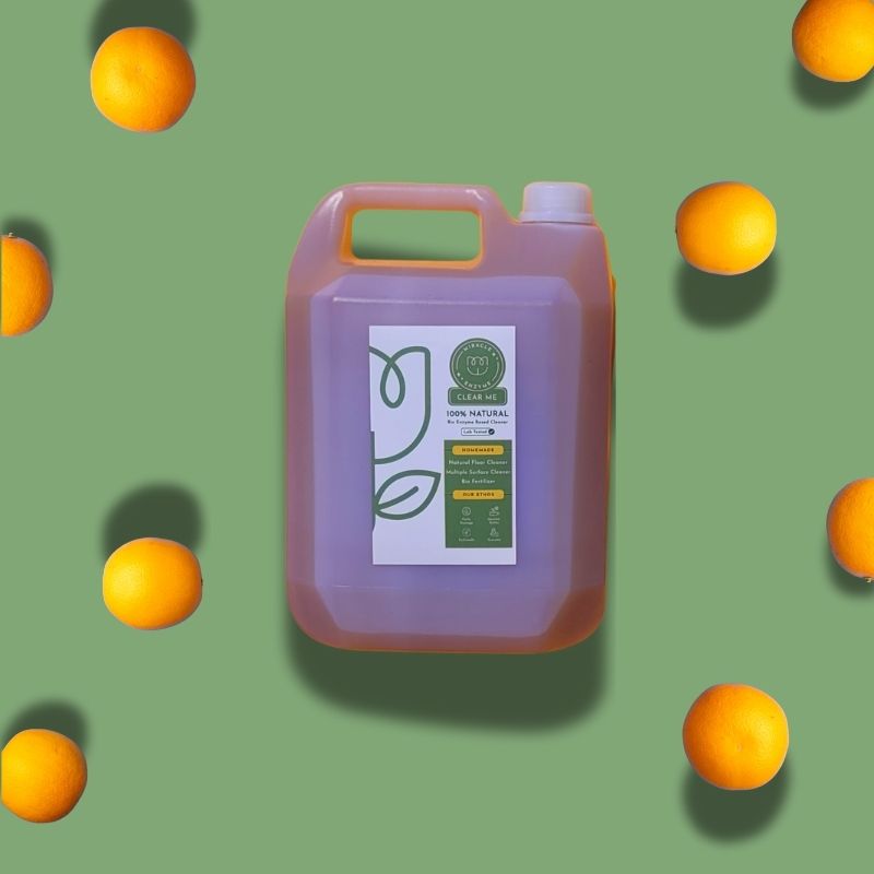 Miracle Enzyme is an entirely natural ,organic and chemical free multipurpose cleaner for your home. It not only does its job of disinfecting all the surfaces but also as a by product ends up cleaning the environment once it goes down the drain.The microbes in bio-enzymatic cleaners are able to reach very small cracks and crevices on surfaces, which means they can eliminate soiling and malodours.Its concentrated and needs to be diluted before use. Bio Enzyme based cleaner made out of citrus peels, jaggery and water with lemon grass essential oil.