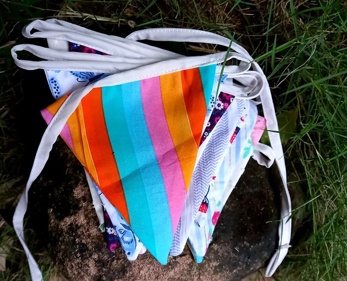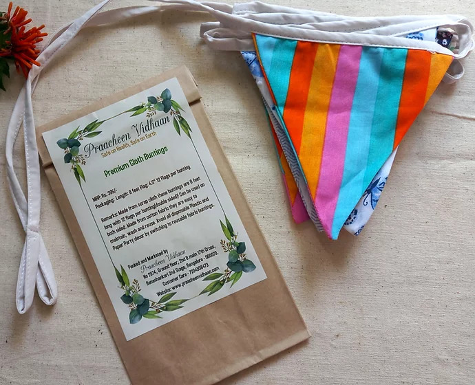 - These buntings are eco-friendly at the end of usage life. Not only do they help avoid plastic decor, they also help avoid fabric waste from reaching landfills