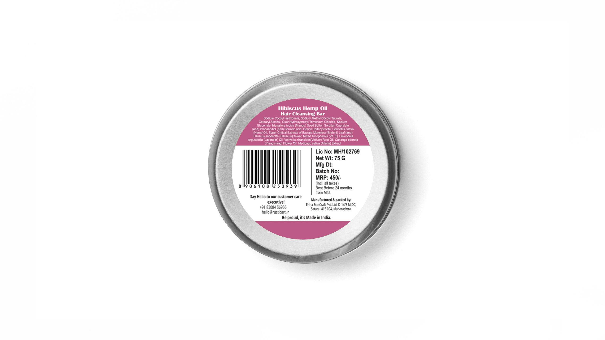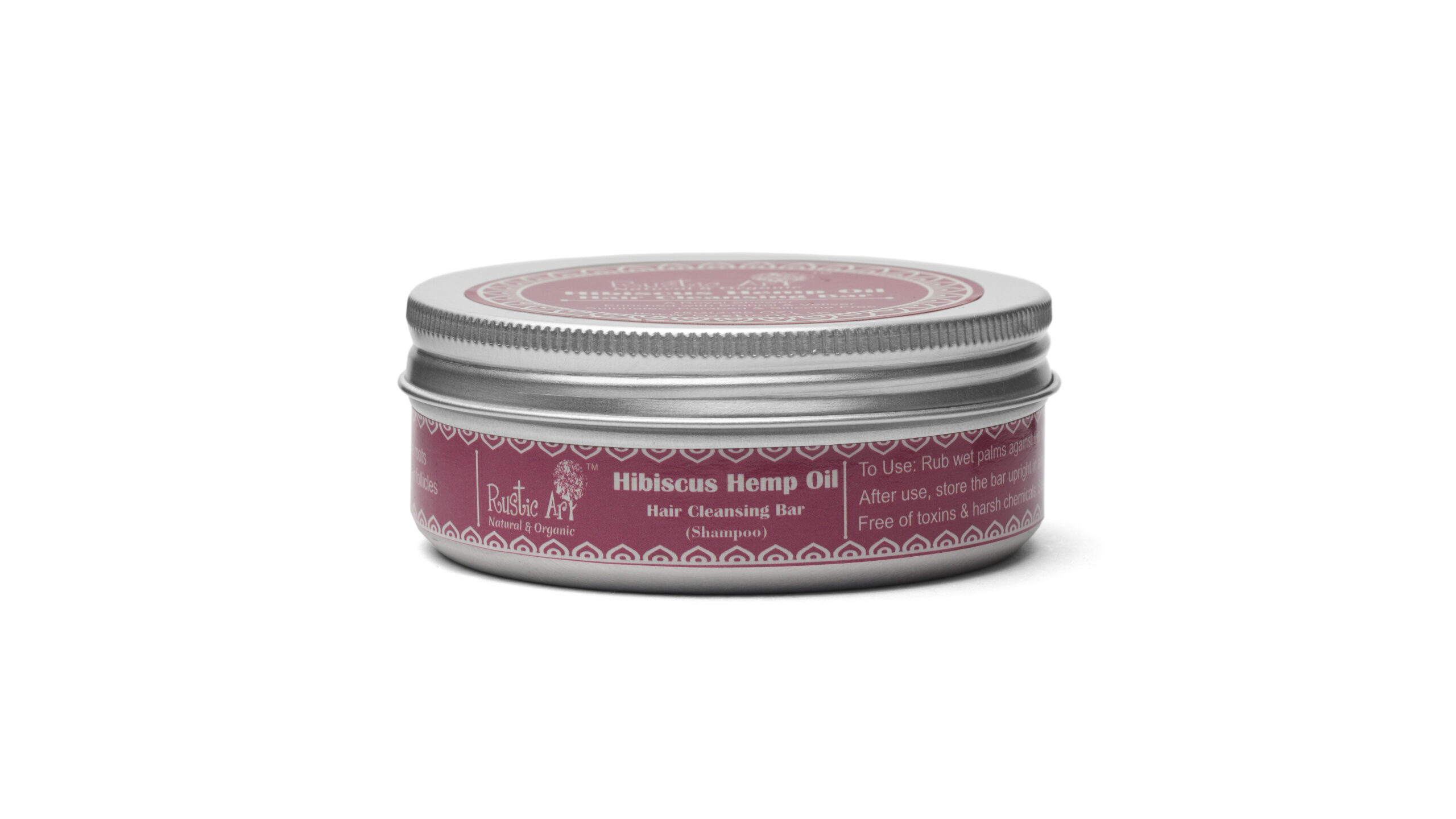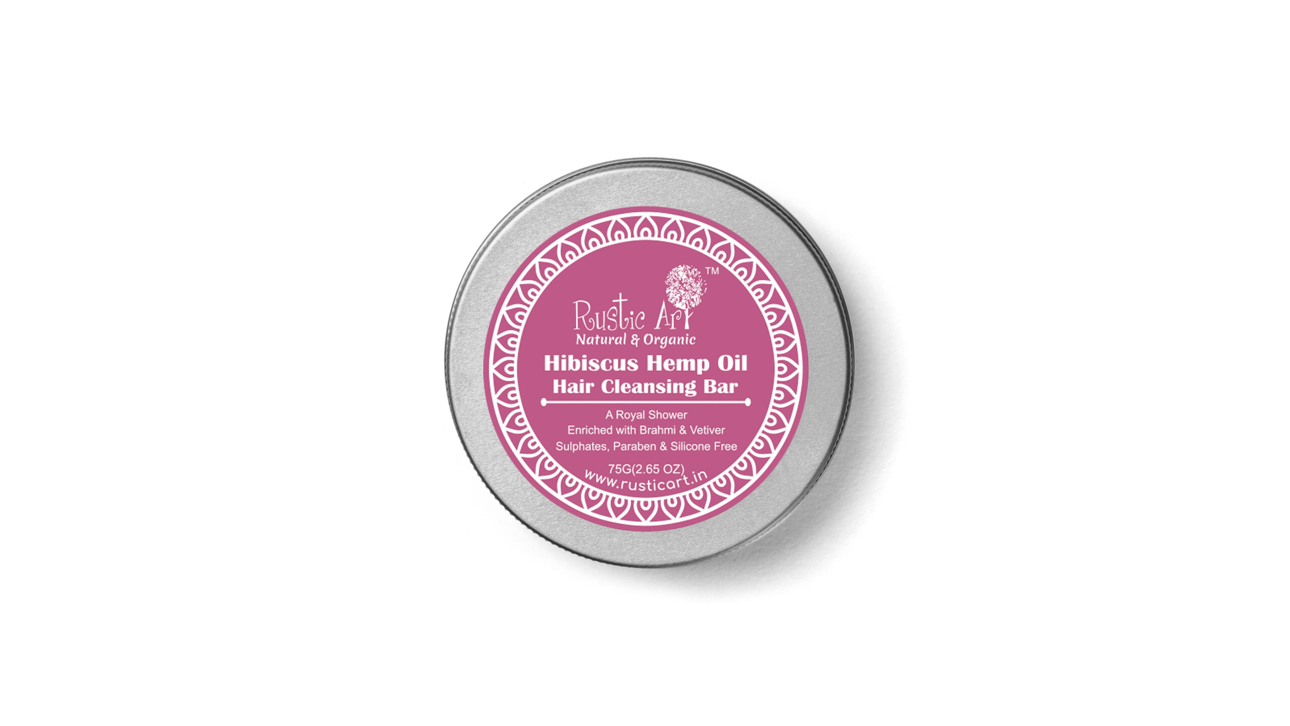 Rustic Art Hibiscus Hemp Oil hair cleansing bar is your personal hair spa in your palm. Hibiscus, Hemp Oil & Brahmi thicken the hair root and strengthen the hair follicles. Hemp oil prevents extra water absorption in the hair & balances the natural oils. Vit. E, Mango butter and Brahmi nourish the scalp and keep the hair tangle free. This in turn, adds shine to it and lubricates the hair shaft. Brahmi & Lavender stimulates the scalp improving the blood circulation and in turn increasing the health and volume of the hair, strengthen the hair root & promote hair growth. Vetiver’s antioxidant properties prevent scalp pigmentation. The combination of Ylang Ylang, Vetiver, Lavender oils & Alfaalfa extract help prevent excess hair fall & hair thinning. This unique formula helps prevent premature hair greying, thinning & damage due to environmental stressors. The floral fragrance gives you a calming hair wash experience just like a hair spa.