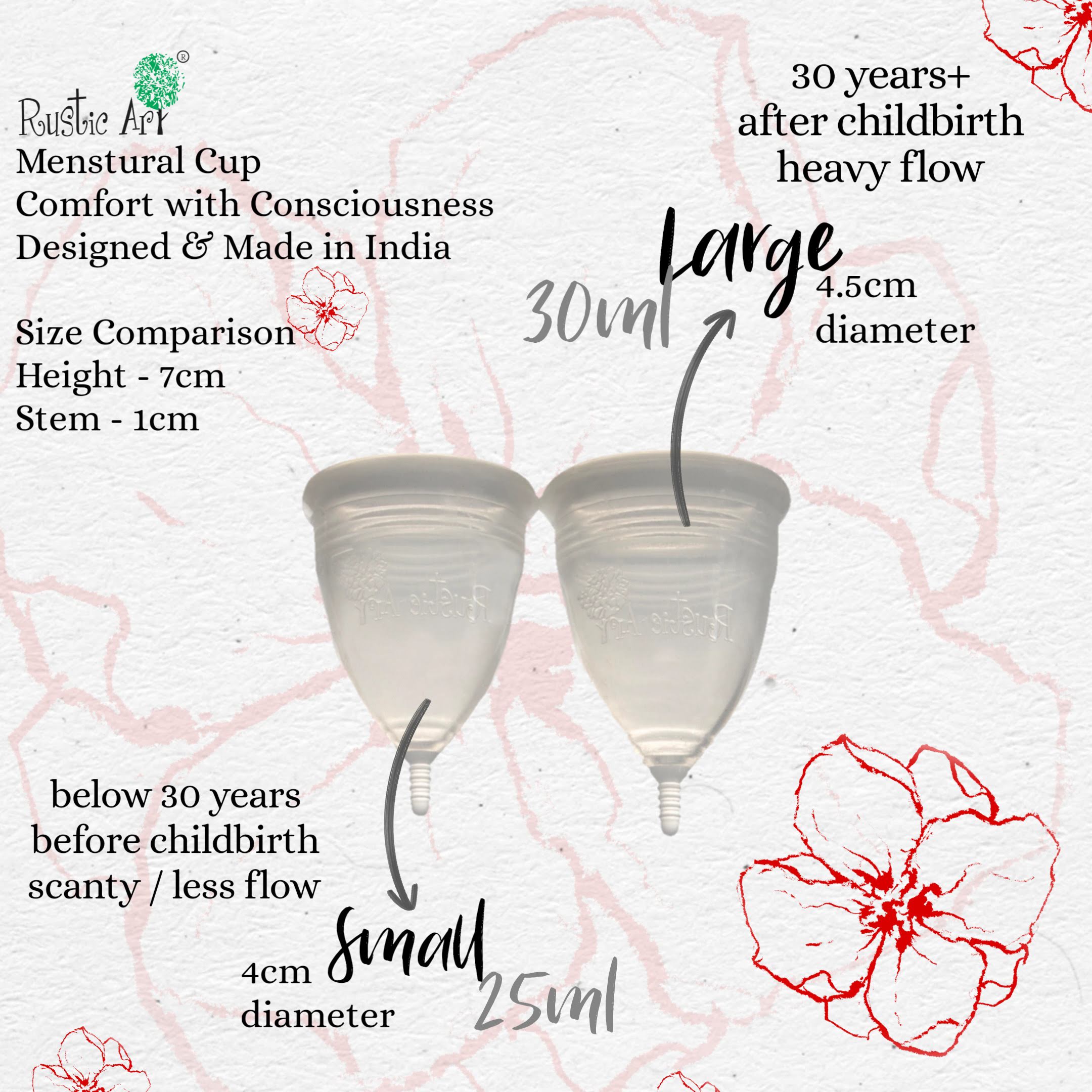 Rustic Art Menstrual Cup is a reusable sanitary wear, which collects the menstrual fluids, 25-30 ml at a time. It’s made out of medical grade silicone, which doesn’t react with the either the body, or the vaginal fluids. Since it goes entirely inside the vagina, the ease of body movements is at the maximum, making it a pit stop for most of the sportswomen.