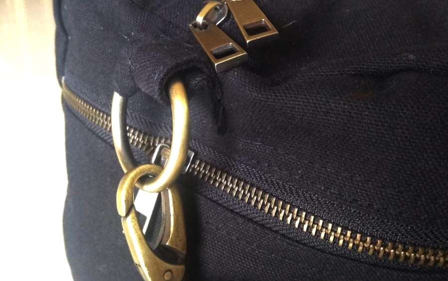 High Quality stitching with black canvas to create a durable, hard-wearing bag. Top grain leather and brushed brass fixtures added for a luxurious, high-quality finish.