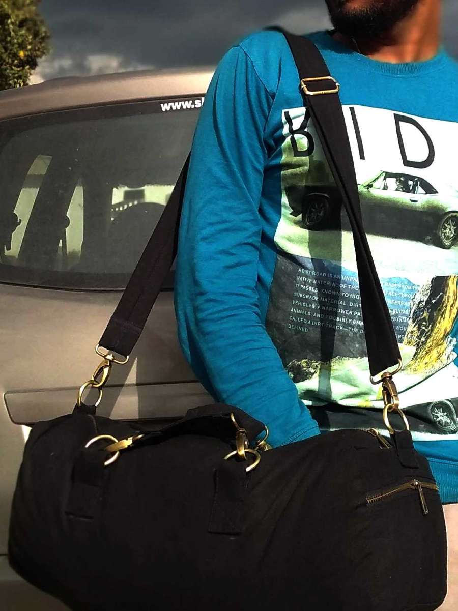 One black eco-friendly canvas duffle bag by Save Globe