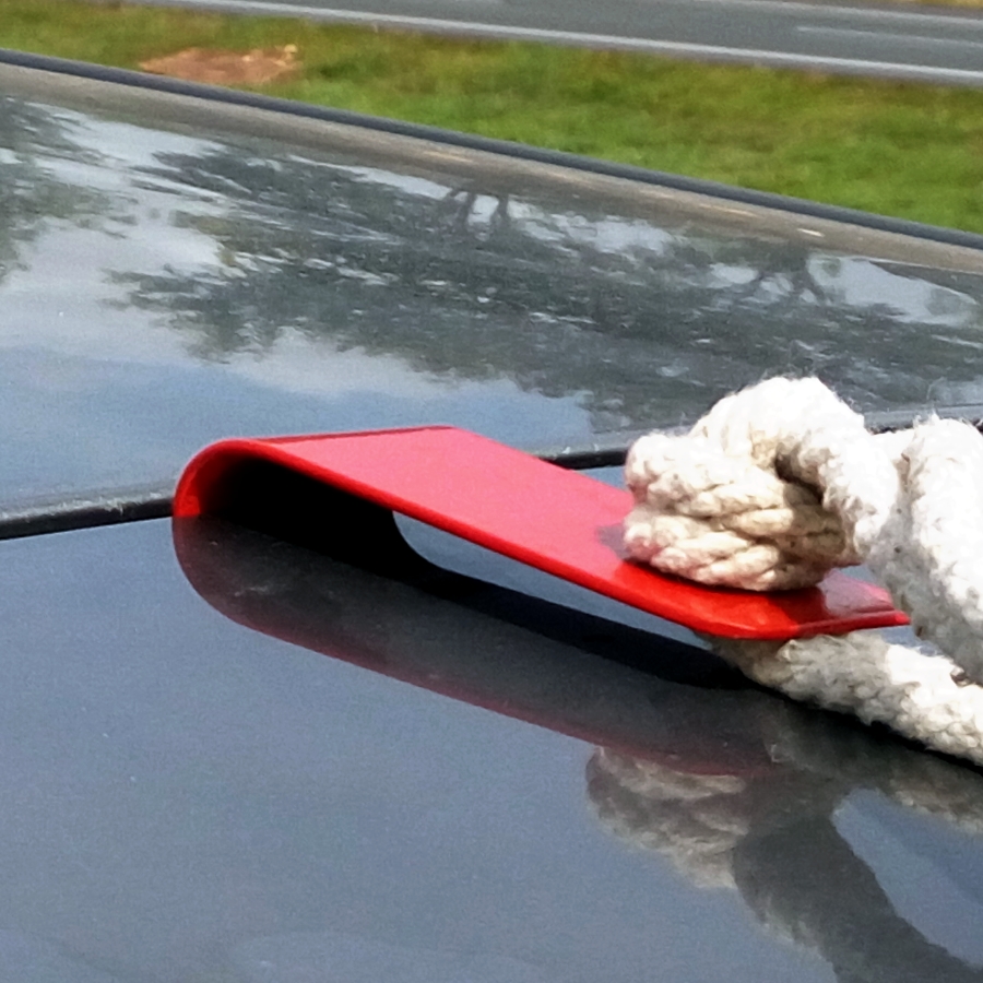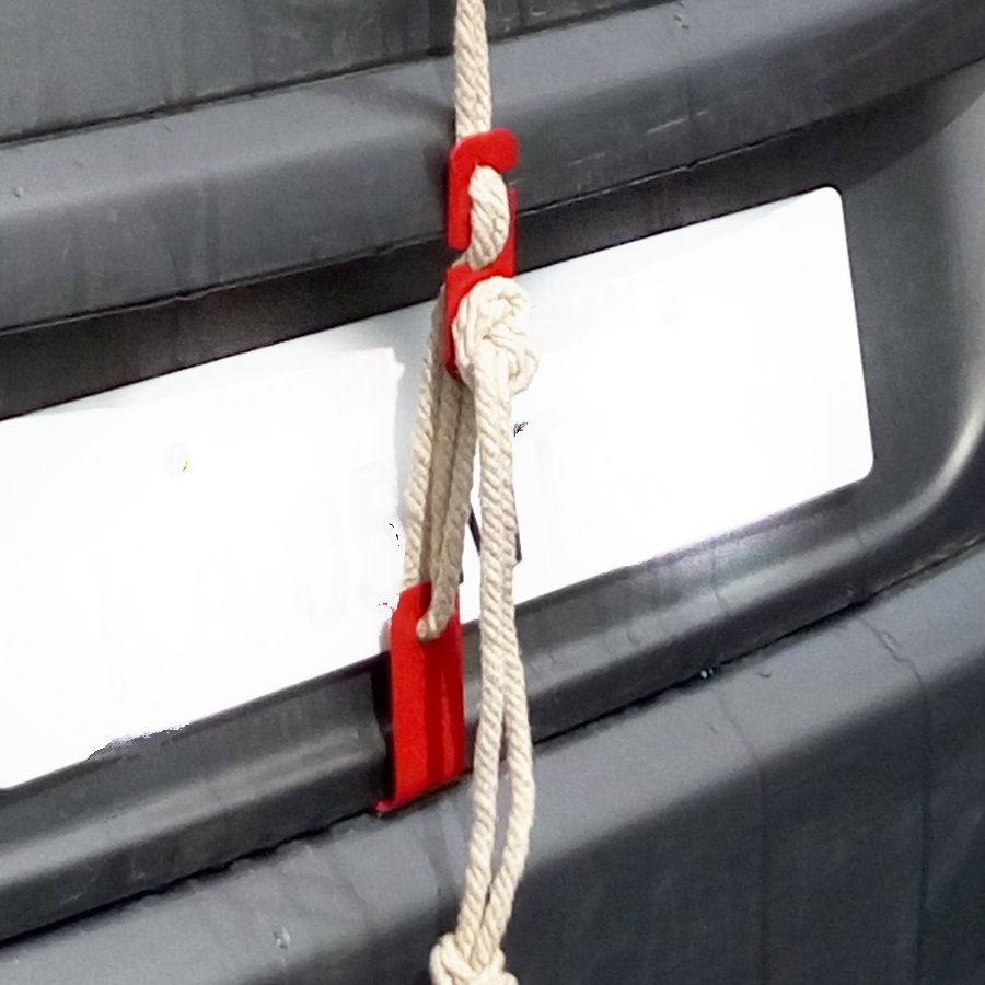 – Long rope set includes a Red colored hook on one end which need to inserted to car on bottom side of car dicky door and Snap hook on the other end which need to be hooked to the ring which is hung from the rope of bag. A red colored tightener is placed to increase and reduce the length of the rope based on the different car sizes.