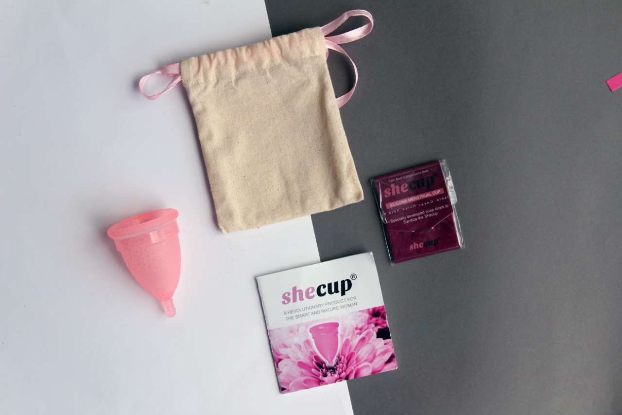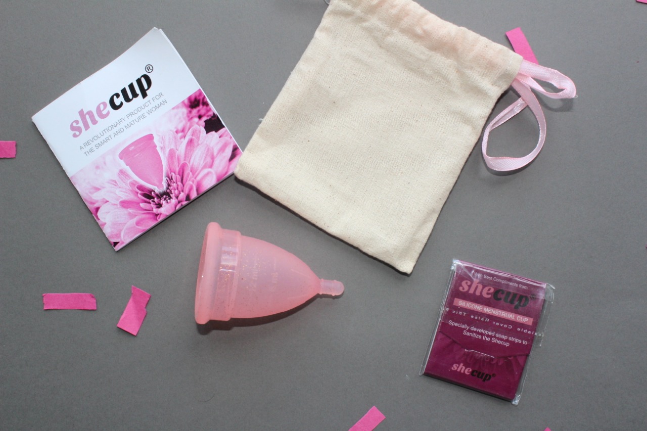 It consists of a Shecup L Menstrual Cup with longer stem. It comes in a khadi cloth bag, with Shecup wipes and an instruction booklet.