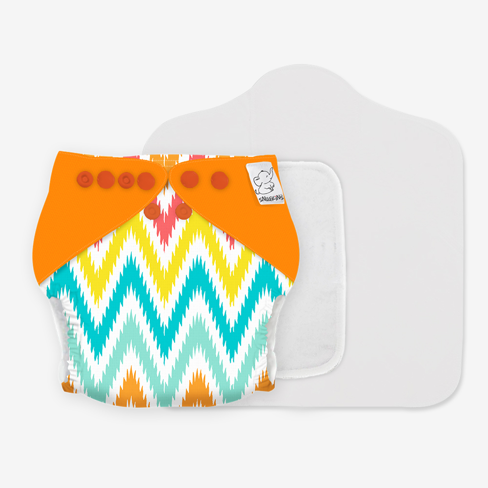 01 Snugkins -New Age Diaper (Macaroon Ikat) consisting of 1 Wet-Free Organic Cotton Prefold Pad and 1 Booster Pad.