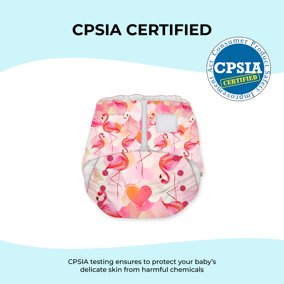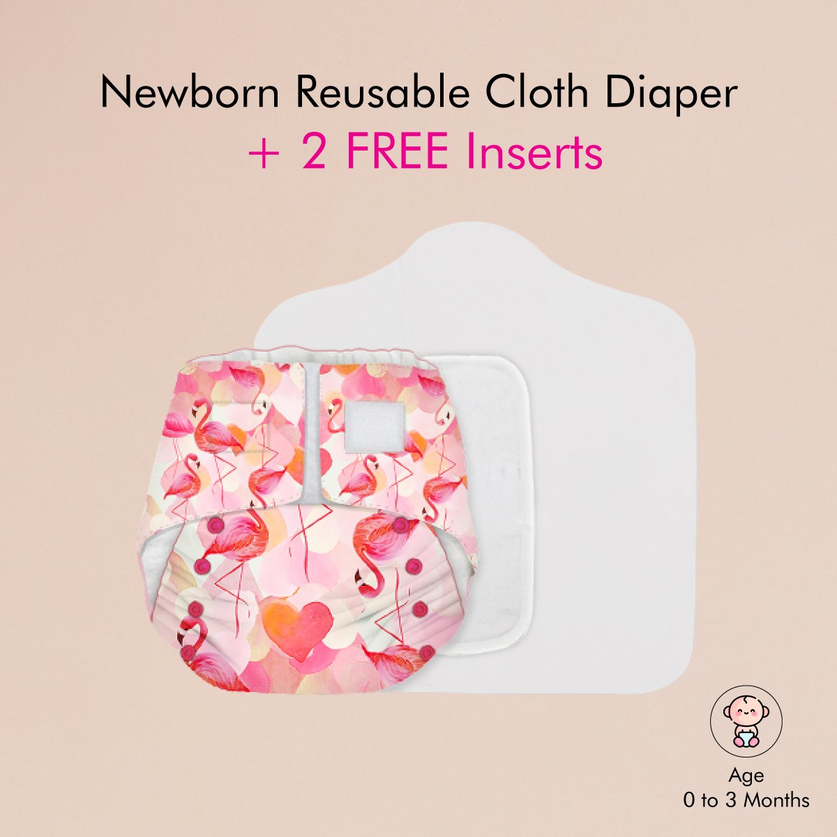 01 Snugkins -Newborn Bliss Diaper (Flamingo Hearts) consisting of 1 Wet-Free Organic Cotton Pad and 1 Booster. (2.5kg – 7kg)