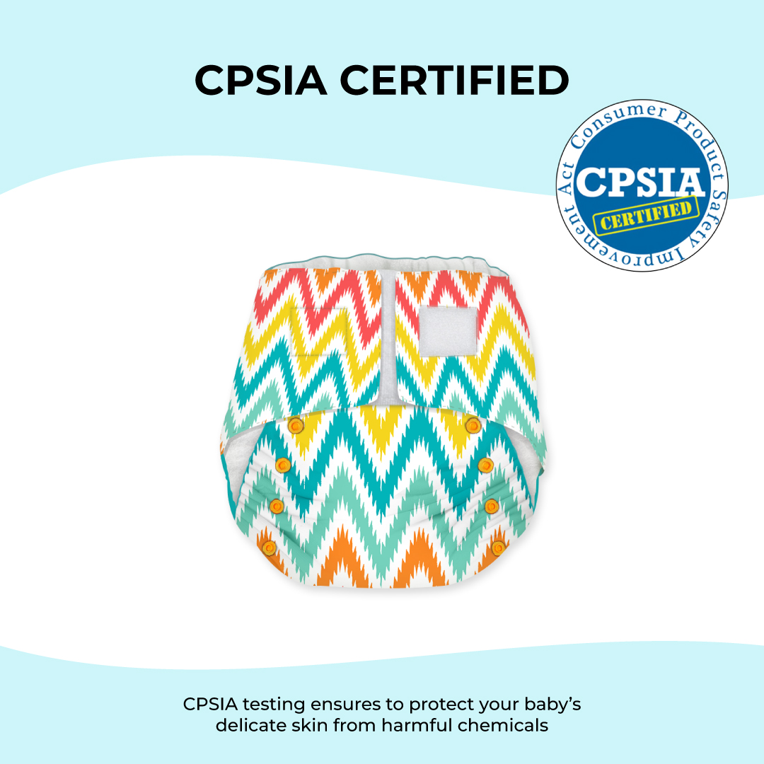 • The interior contains 12 layers of GOTS certified organic cotton along with a highly absorbent sheet to always keep your baby’s bum dry. It also has an additional 9 layers of organic cotton booster.