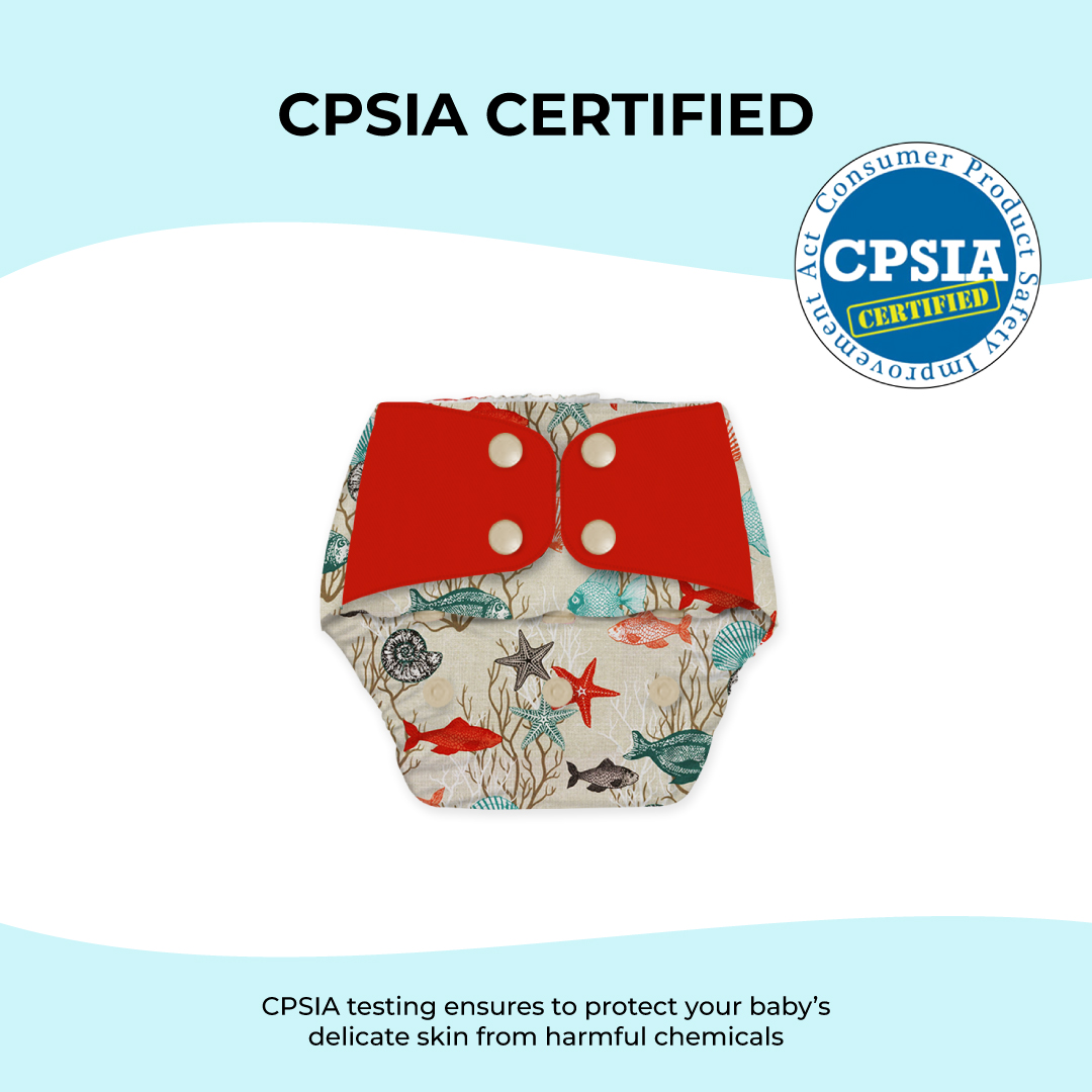 Snugkins Cloth Diapers are CPSIA tested and certified. CPSIA stands for Consumer Product Safety Improvement Act. This means that our cloth diapers are safe from harmful chemicals and metals, and in compliance with all applicable children’s product safety rules enforced by the Consumer Product Safety Commission (CPSC).