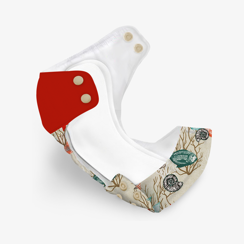 1 Multi-sized Outer Shell (Aquatic Dream) and 1 Wet-Free Microfiber Terry Soaker (Fits babies 5-17kgs)