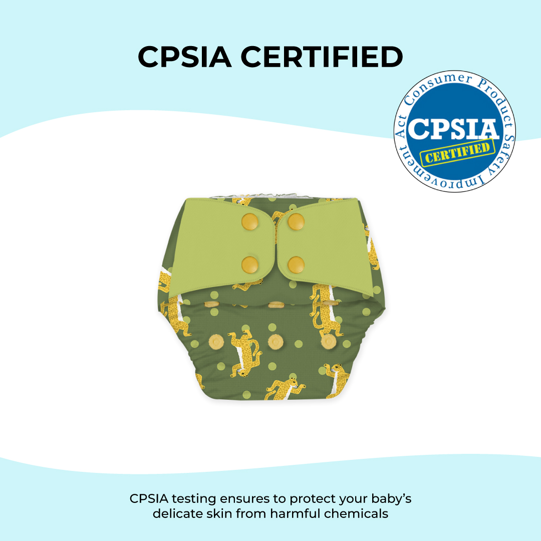 Snugkins Cloth Diapers are CPSIA tested and certified. CPSIA stands for Consumer Product Safety Improvement Act. This means that our cloth diapers are safe from harmful chemicals and metals, and in compliance with all applicable children’s product safety rules enforced by the Consumer Product Safety Commission (CPSC).