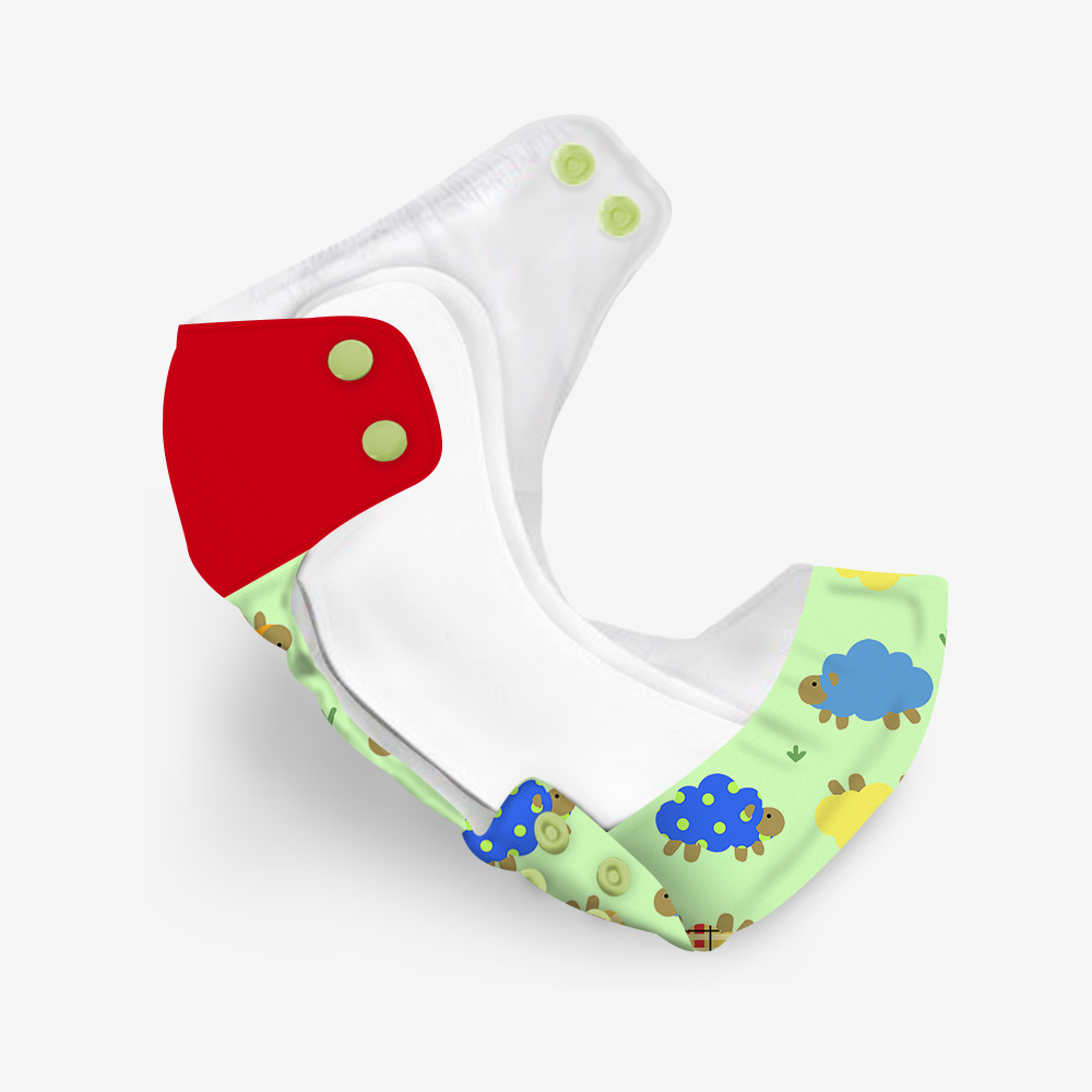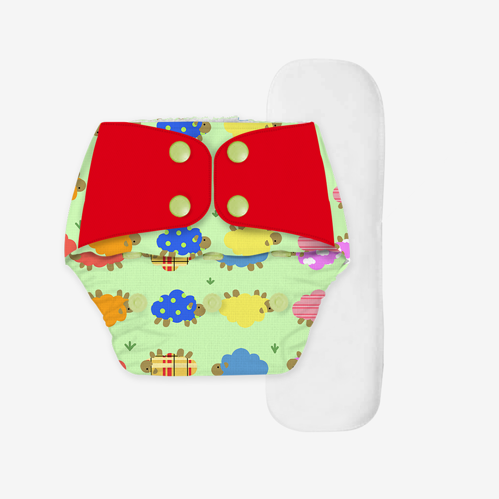 1 Multi-sized Outer Shell (Dreamy sheep) and 1 Wet-Free Microfiber Terry Soaker (Fits babies 5-17kgs)