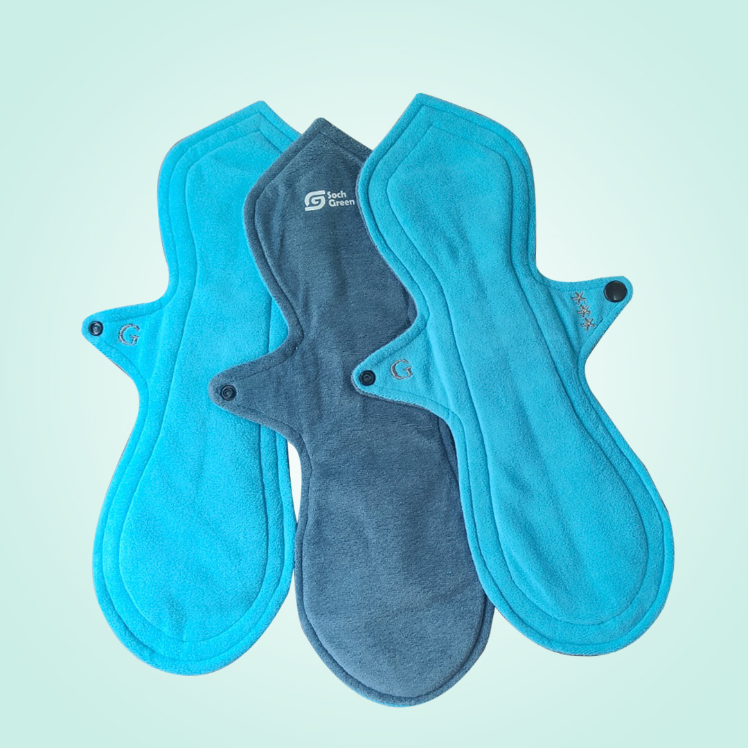 03 Soch Green Organic Reusable Cloth Pads (Gushy Flow) , Blue and Gray.