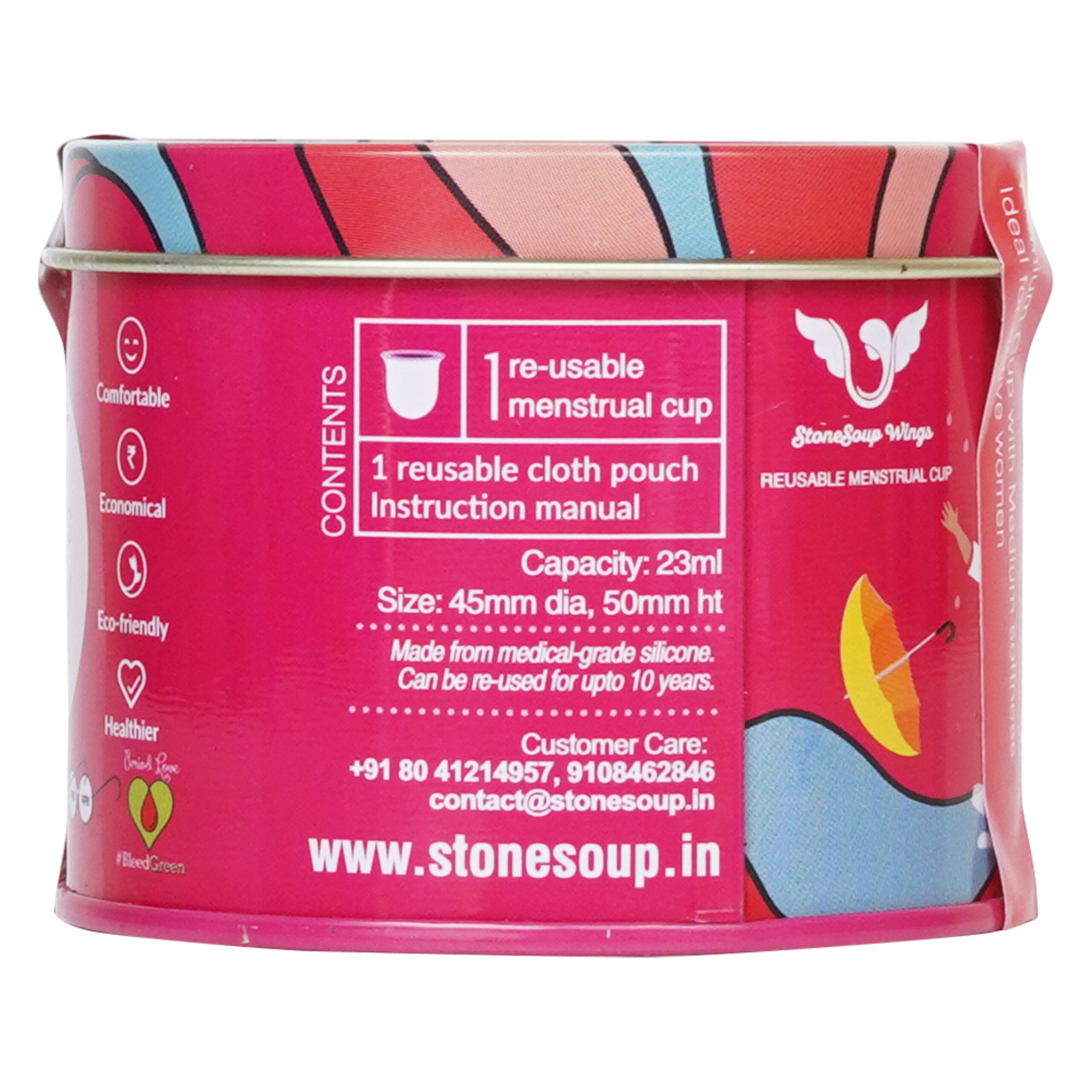 - Economical: One StoneSoup Wings cup can be used for up to 10 years. Instead of spending money on disposable sanitary pads/tampons month after month, the cup will save you from the regular expense.