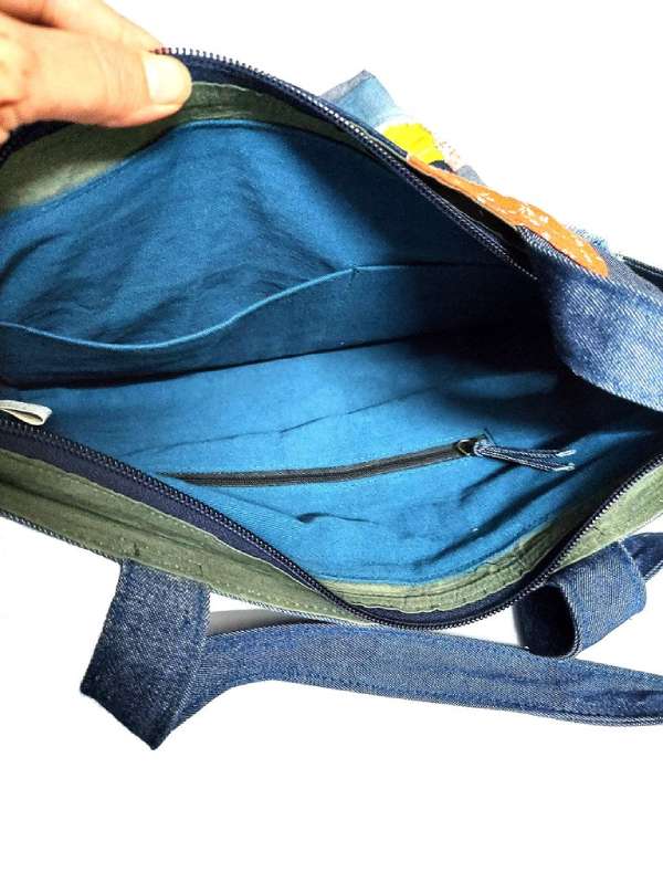 This Denim Tote is upcycled from old pairs of jeans and cotton fabric scraps. It had been put together by our team of women crafters. Well suited for everyday use. Easy to carry and of course a guiltfree Fashion Commodity.