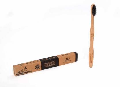 The Whiteleaf Activated charcoal soft bristle toothbrush handle is made out of a renewable and natural resource- Bamboo. The base material of the bristle is nylon. It aesthetically designed for usage by kids, adults, and elders. With 180 mm length , slim design and apt curves facilitates right grip and comfortable brushing. The polished surface ensures safe usage too. The Bristles are smooth and soft, infused with activated charcoal.