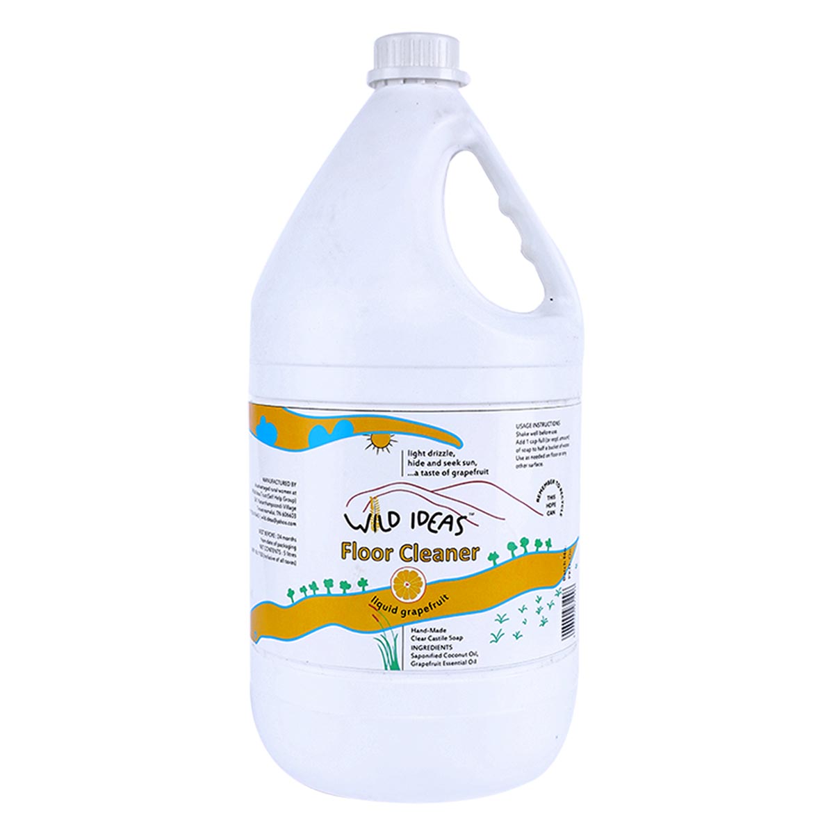 The Wild Ideas all natural handmade floor cleaner leaves your floors and all surfaces squeaky clean. It has liquid vegetable castile soap topped with the added disinfecting and cleaning properties of grapefruit essential oil