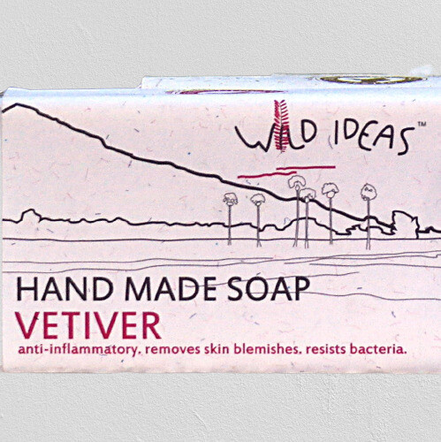 The natural, hand-made vetiver soap by Wild Ideas gives clean skin. Vetiver has cooling properties and this can be a boon for people with sensitive skin. Vetiver treats inflammation & improves skin tone. The vetiver root extract has an antiseptic and anti-microbial property that helps in getting rid of acne and pimples. It clears the skin, giving it a fresh and rejuvenated look. Vetiver oil plays a major role in reducing wrinkles and blemishes. It helps in tightening firming skin, which gives you a youthful look.  this hand-made vetiver soap that is anti-inflammatory, removes skin blemishes and resists bacteria.